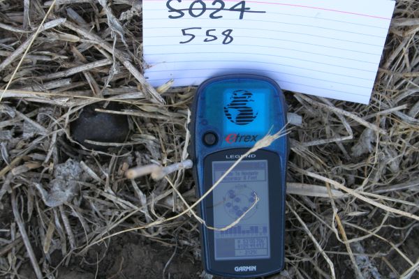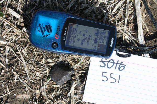Find 558. Mass 59.4g. NAD83 coords: 53 00.706 N, 109.493 W. This meteorite outweighed all my other finds, so it went to the landowner.